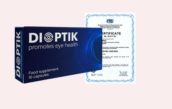 Κάψουλες Το Dioptik είναι ένα βιολογικά ενεργό συμπλήρωμα που στοχεύει στη διατήρηση των λειτουργιών των οργάνων της όρασης. Το προϊόν περιέχει εκχυλίσματα βατόμουρου και σταφίδας, πλούσια σε ανθοκυανίνες, υαλουρονικό οξύ και εκχύλισμα καλέντουλας. Το σύμπλεγμα αυτών των ουσιών συμβάλλει στην ενυδάτωση των ματιών, στην ενίσχυση των τριχοειδών αγγείων του βυθού των ματιών και στην προστασία από αρνητικές εξωτερικές επιδράσεις.